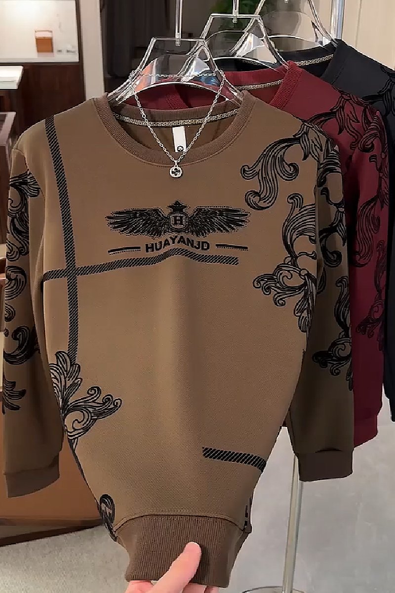 Autumn and winter thickened flocking printed sweatshirt