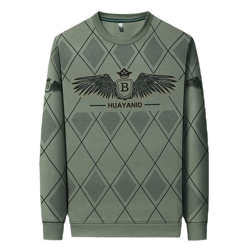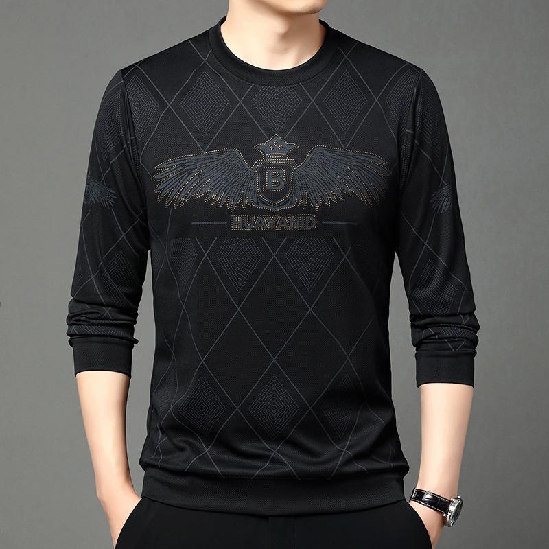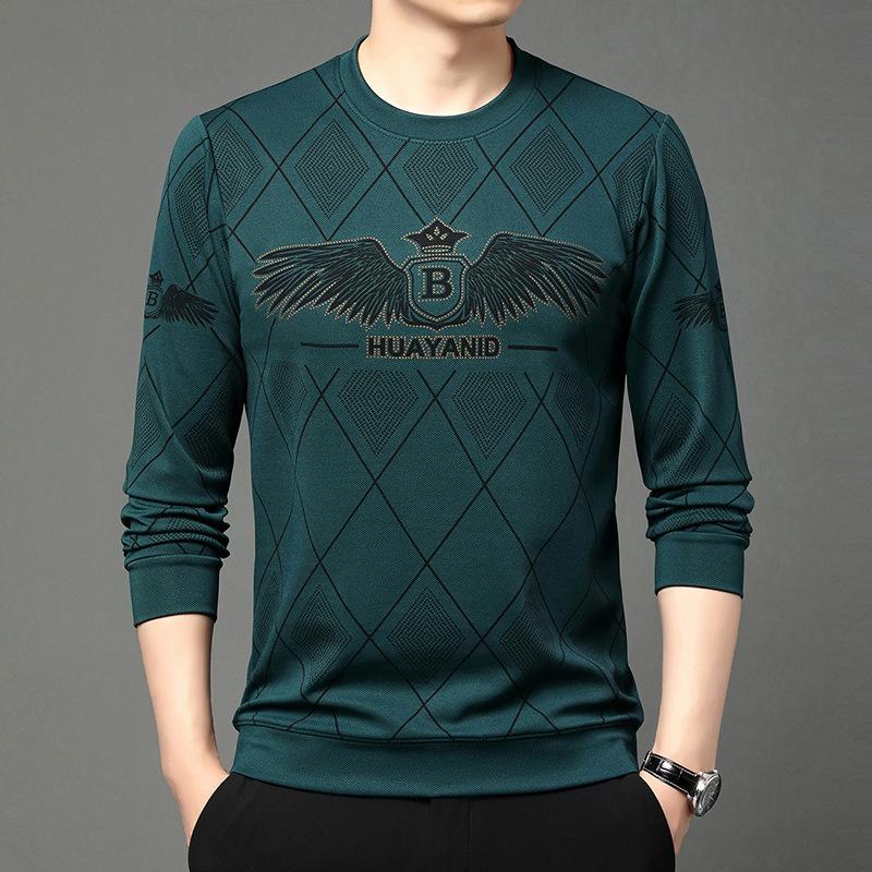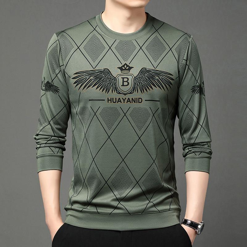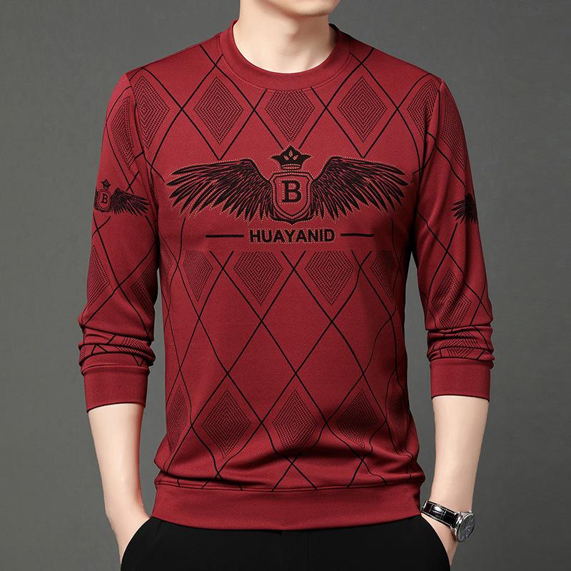 Men's autumn and winter plush printed long sleeved round neck T-shirt