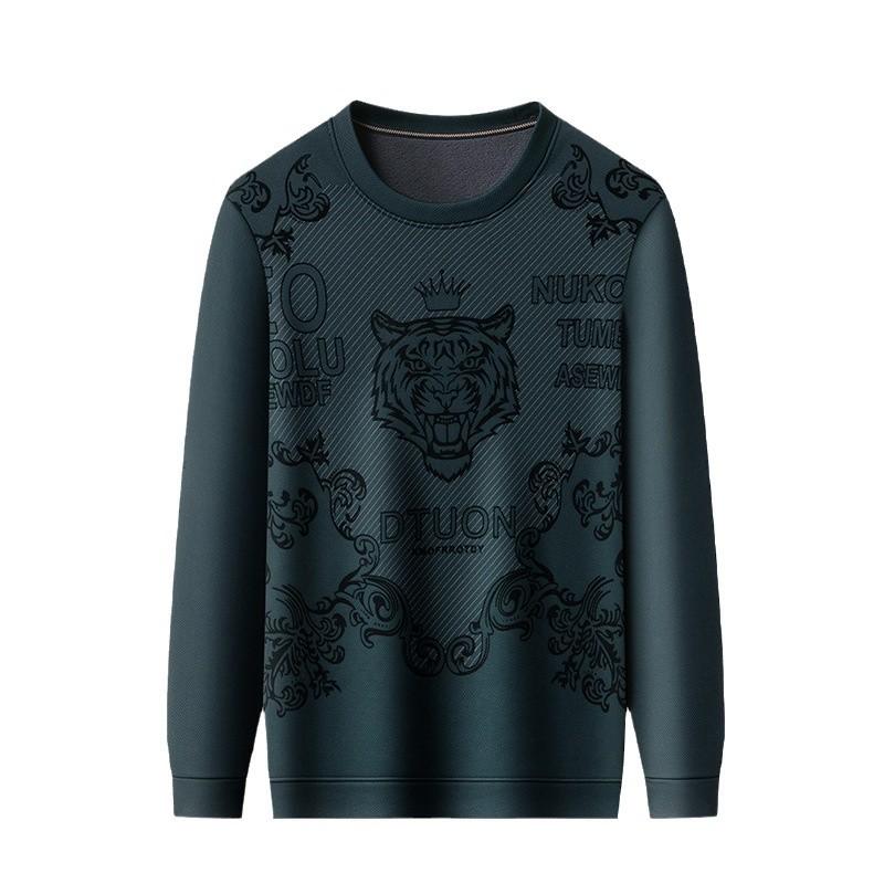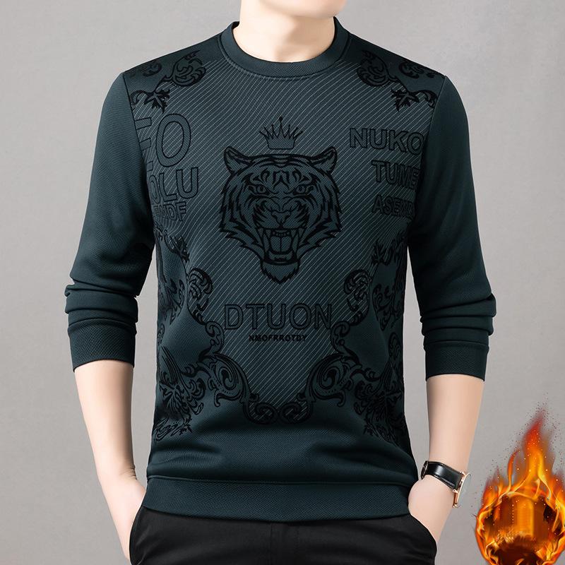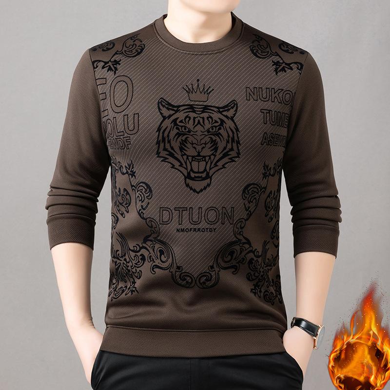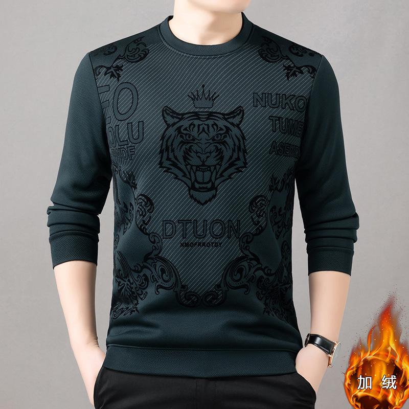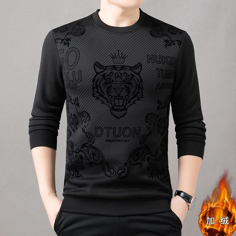 Men's autumn and winter velvet trend plush round neck base shirt