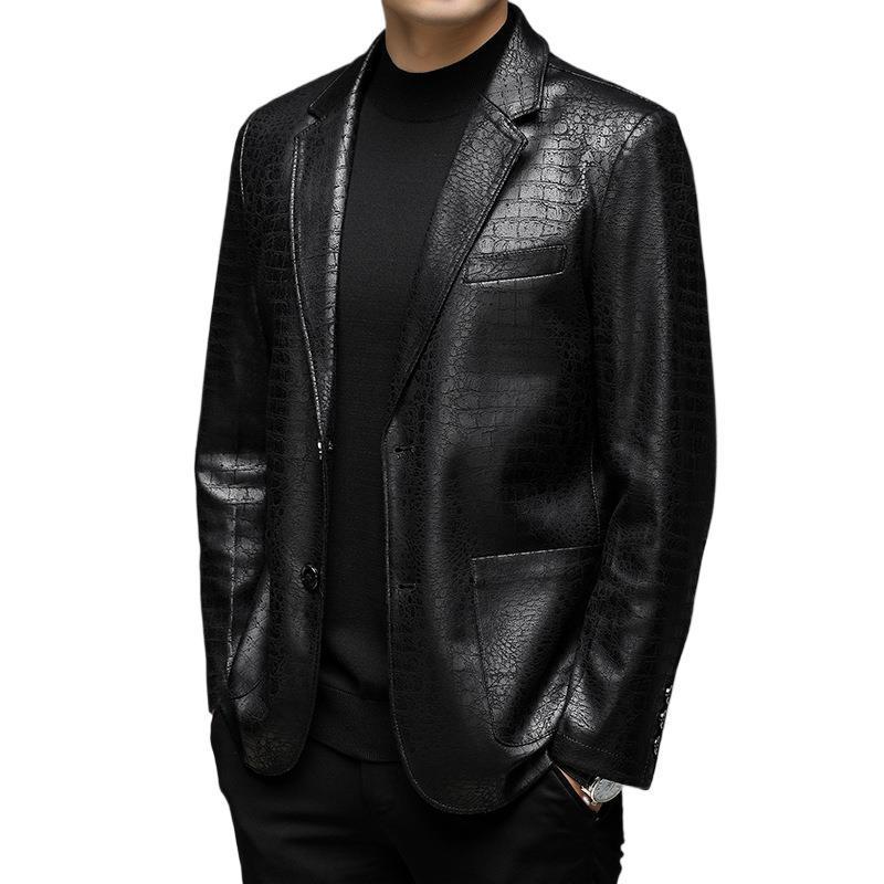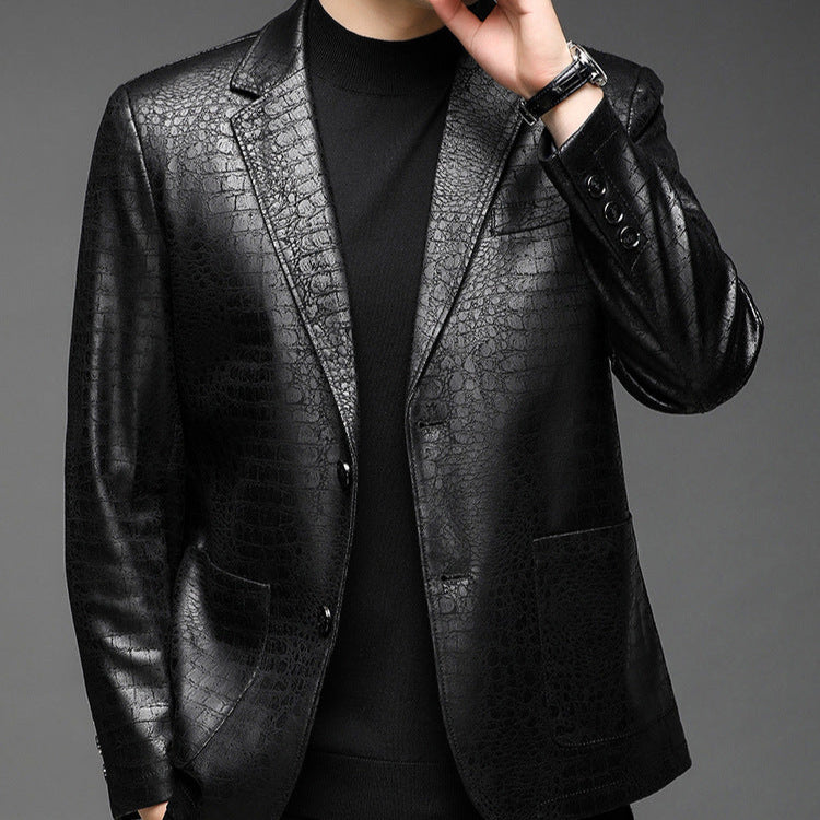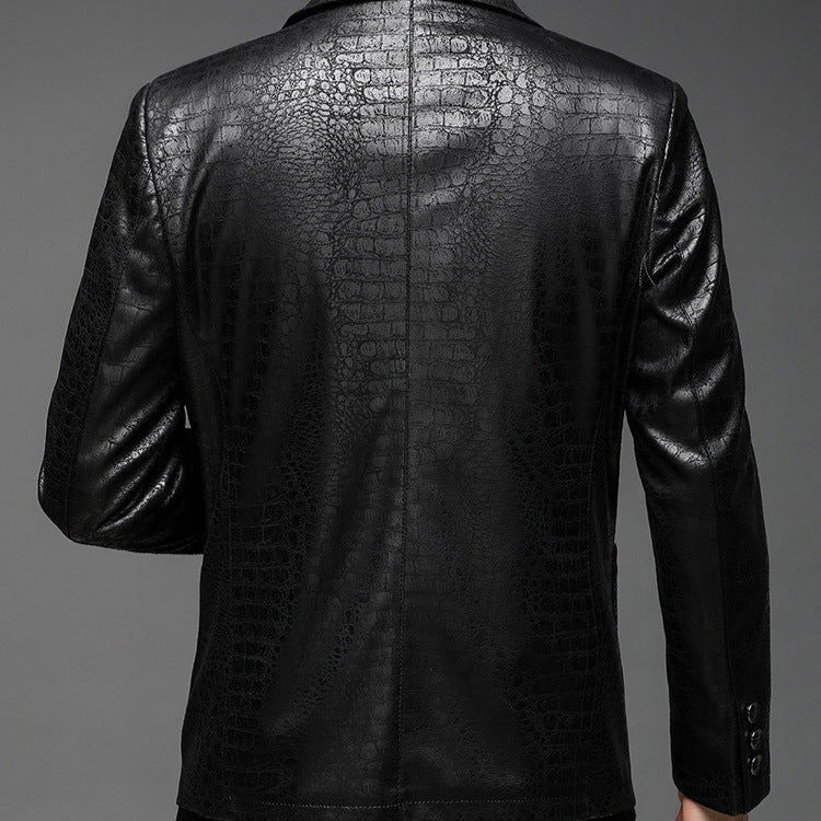 Textured leather suit jacket